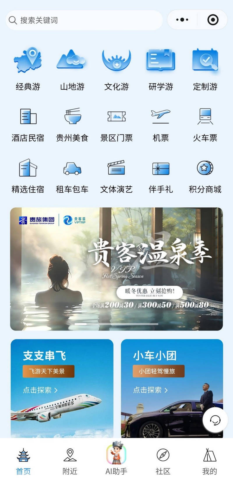 “贵客荟”是数字化的贵州精致旅游服务平台,汇聚全省优质旅游产品,旨在为用户提供“吃住行游购娱”全链条服务。